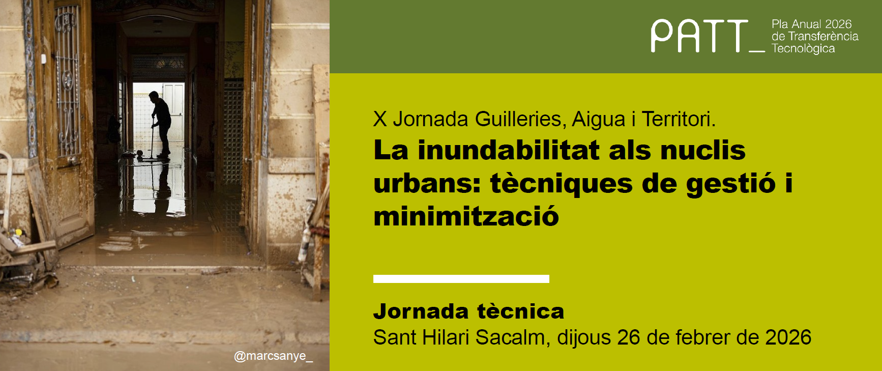 El proper dijous 26 de febrer es celebrarà, al Centre Aqua de Sant Hilari Sacalm (la Selva), la Jornada Tècnica Guilleries: Aigua i Territori, que porta per títol “La inundabilitat als nuclis urbans: tècniques de gestió i minimització”.Programa de la jornada 202609.30 h Inscripcions i lliurament de la documentació10.00 h Presentació de la jornadaIl·lm. Sr. Jordi Rotllant i Cors. Alcalde de Sant Hilari Sacalm10.15 h El mapa de protecció civil de Catalunya i el Pla de gestió del risc d’inundacions: què cal conèixer? Cristina Vicente Moreno. Responsable d’Operacions de Protecció Civil de laSEE DETAILS